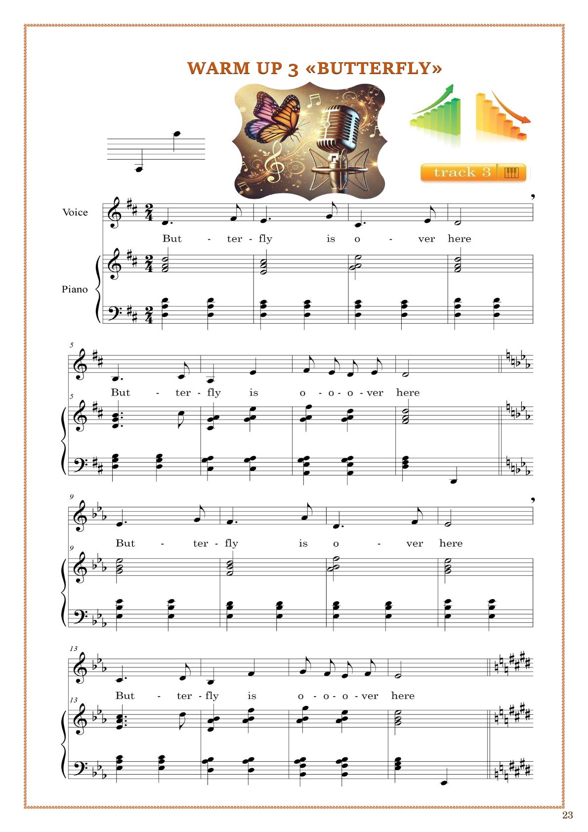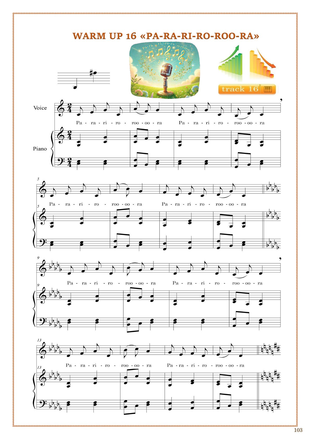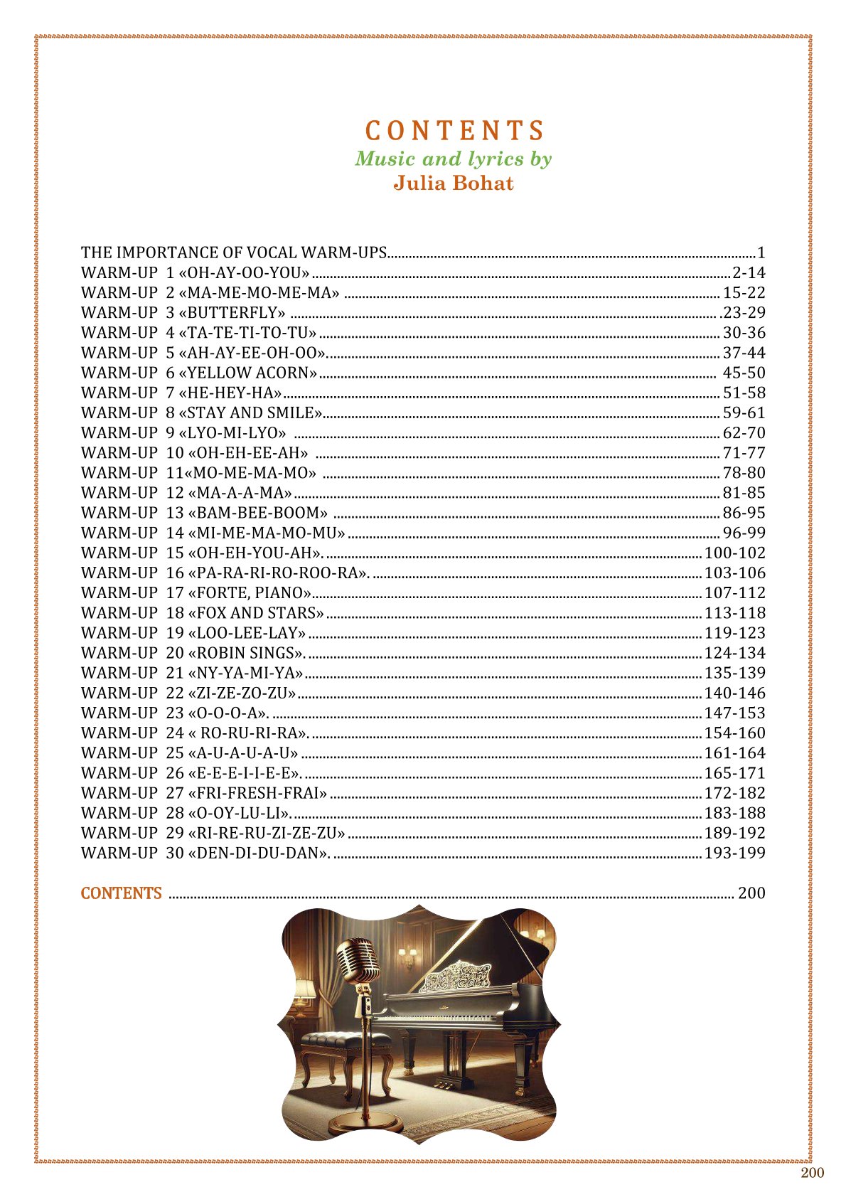 This collection is a unique and modern resource for vocal teachers, developing singers, and everyone who wants to strengthen and improve their voice. It contains 30 carefully designed vocal warm-ups aimed at enhancing the key aspects of vocal technique.
