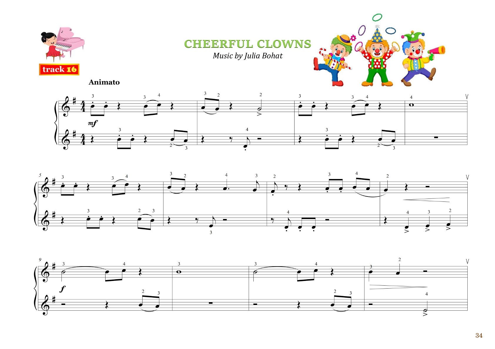 The book features 26 bright piano pieces that gradually introduce young pianists to new musical elements: